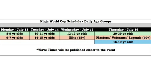 Below, you will find the Age Group Definitions for the Ninja World Cup.